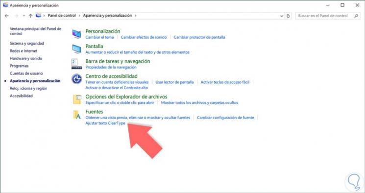 En esta ventana seleccionamos la opción "Apariencia y personalización".